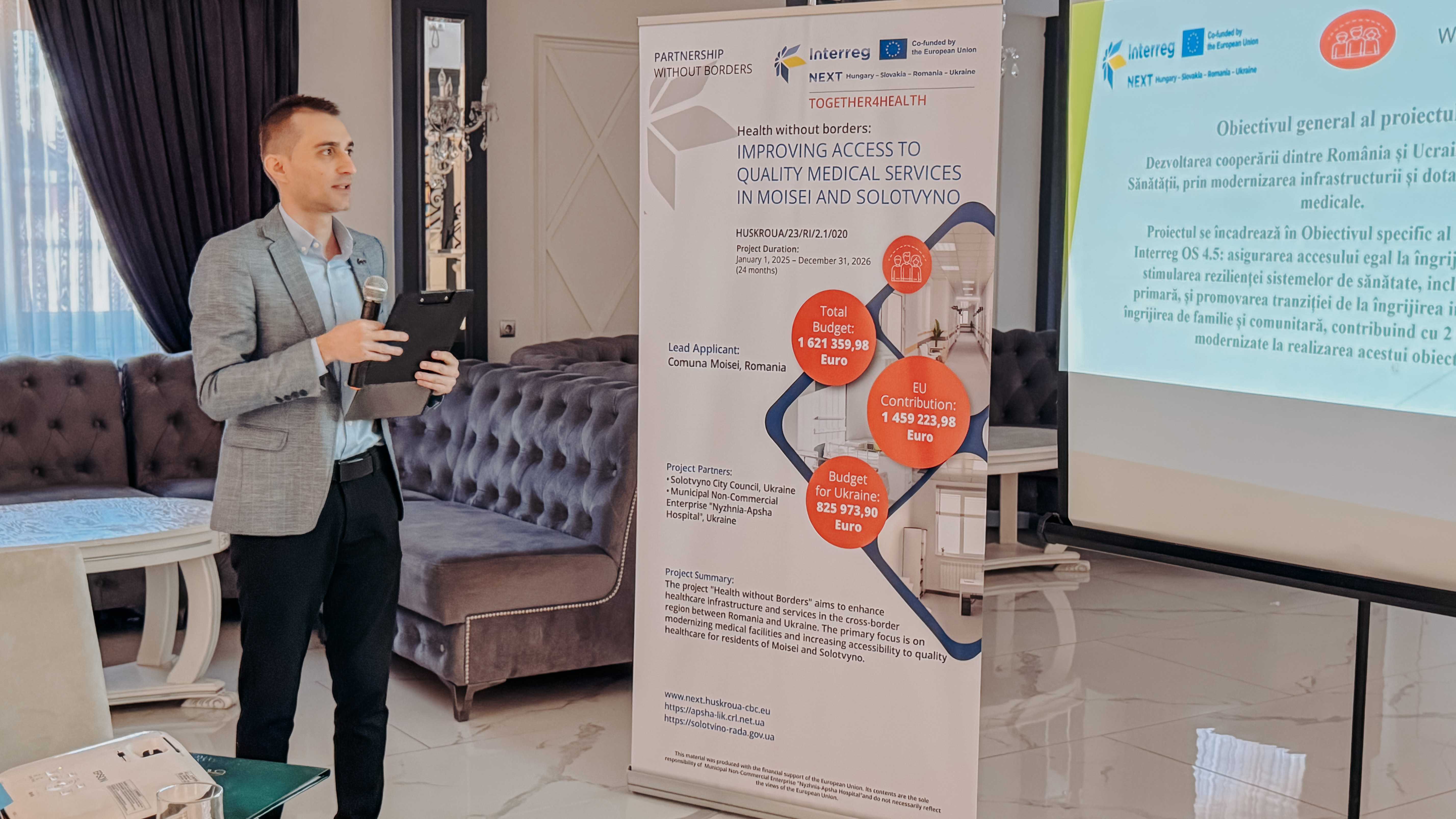 Стартова конференція міжнародного проєкту «Здоров’я без кордонів: покращення доступу до якісних медичних послуг у Мойсеї та Солотвині», номер проєкту HUSKROUA/23/RI/2.1/020